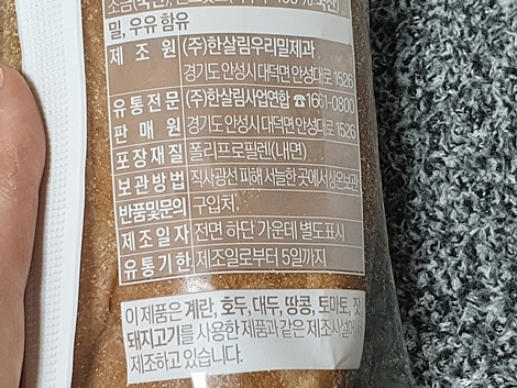 한살림 우리밀 제과에서 만드는 제품으로 직사광선을 피해 상온 보관하고 제조일로부터 5일 이내 먹으면 됩니다. 아시겠지만 빵은 냉장실에 들어가는 순간 수분이 줄어들면서 퍽퍽해지고 맛이 없어집니다. 만약 제조일 이후 5일 이상 보관하셔야 한다면 냉동에 보관하시고 최대 일주일 이내 먹는 것이 좋겠습니다.
