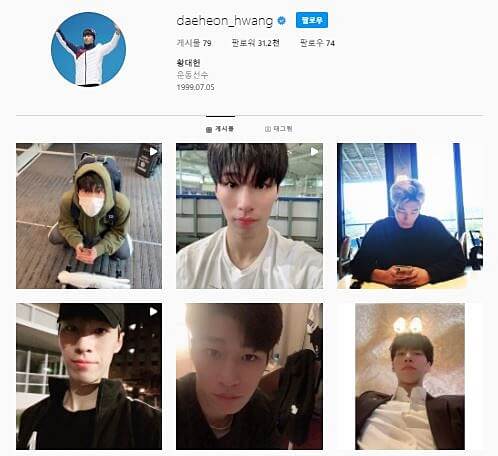 3만여 명의 팔로워를 보유한 황대헌은 꾸준한 실력과 훈훈한 외모로 인기가 많습니다. 인스타그램 주소는 아래와 같으며 일상 사진, 셀카 위주로 업로드됩니다.
